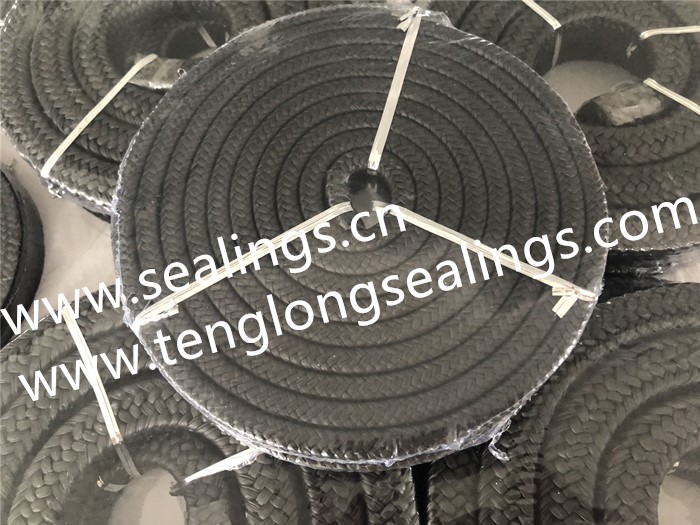 PTFE graphite packing is made from expanded pure graphite yarn, braided into packing through all kinds of technology of braiding. It can be divided into expanded graphite braided packing with inconel wire inserted, expanded graphite braided packing with fiberglass, expanded graphite braided packing impregnated with PTFE dispersion, expanded graphite braided packing with less weight loss etc.