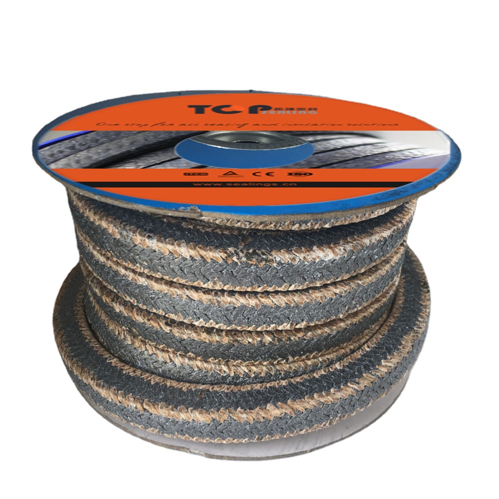 TOP Sealing Graphite Packing With Carbon Corner is produced combining, in the corners, sinthetyc continuousfilament of high purity carbongraphite (>95%), with graphite powder in order to make better its lubrication with expanded mineral graphite of 98% purity in the center. This is a high quality universal packing, specially, for pumps and agitators in high conditions, but it can be used in several applications. Moreover, it is easily adaptable to the stuffing box and it can resist over torque.This packing is specially recommended for high and agresive conditions.